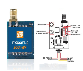FXT社の小型軽量な40チャンネルビデオ送信機です。RF出力をボタンでON/OFF出来るようになっています。(チャンネル設定ボタンと出力ON/OFFボタンが兼用のため、機械的に送信周波数を固定するのは少々厄介です。開局申請スキルレベル:高、と言えます。)取説はメーカー作成の英語版のみとなります。